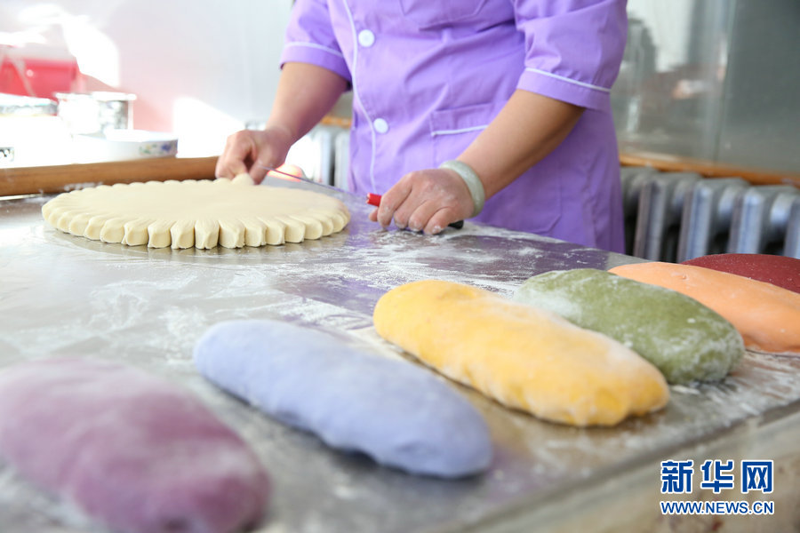 Qiu Xia adds various colors of fruits and vegetables to make colorful dough. (Xinhuanet Cao Yushe)