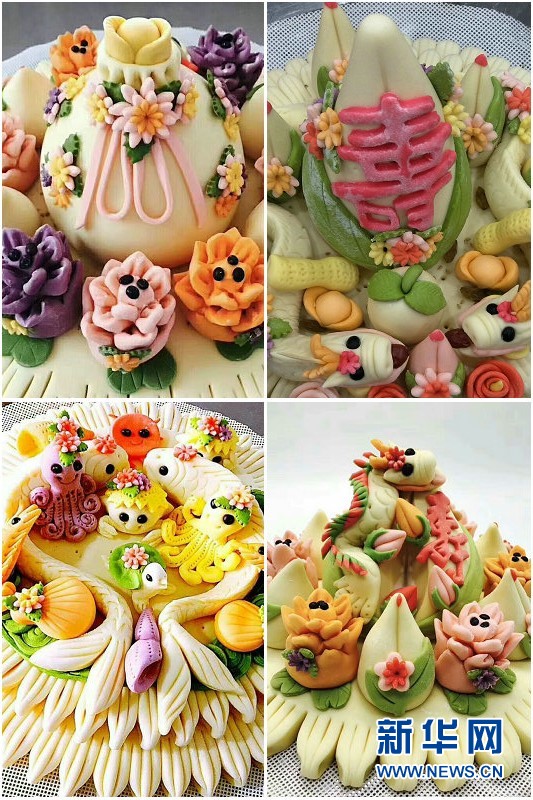 Xinhuanet Hohhot February 1 ST (Cao Zhen) At 7: 00 pm, a set of rich and beautifully made dough sculptures was served at a wedding night in Hangjinhouqi, Bayannaoer City, Inner Mongolia, adding icing on the cake to the rich banquet.